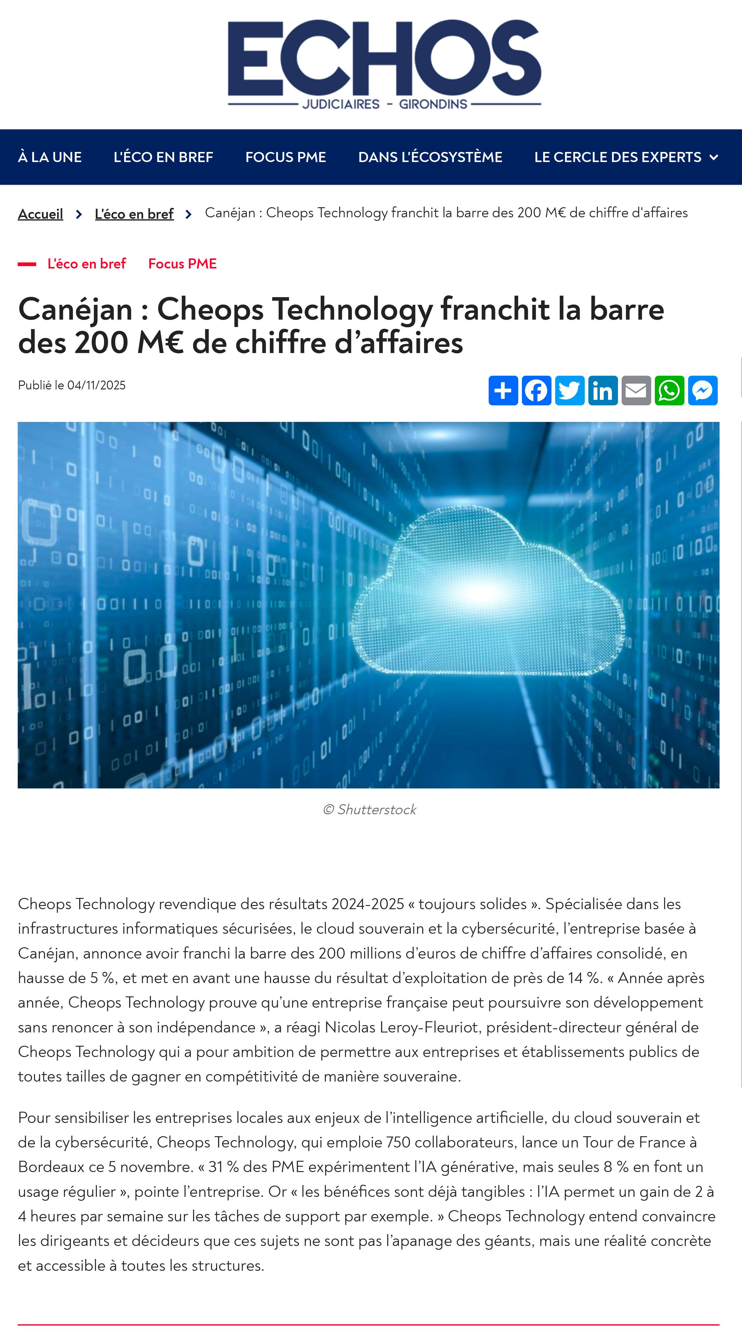 Cheops Technology continue à cartonner avec son offre cloud et croit de 11%