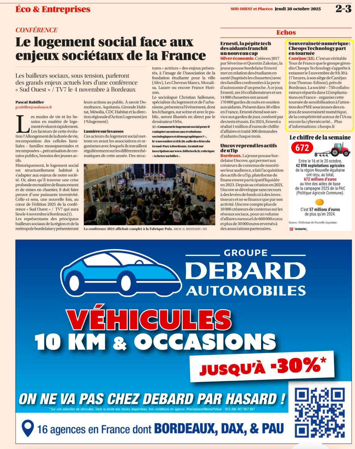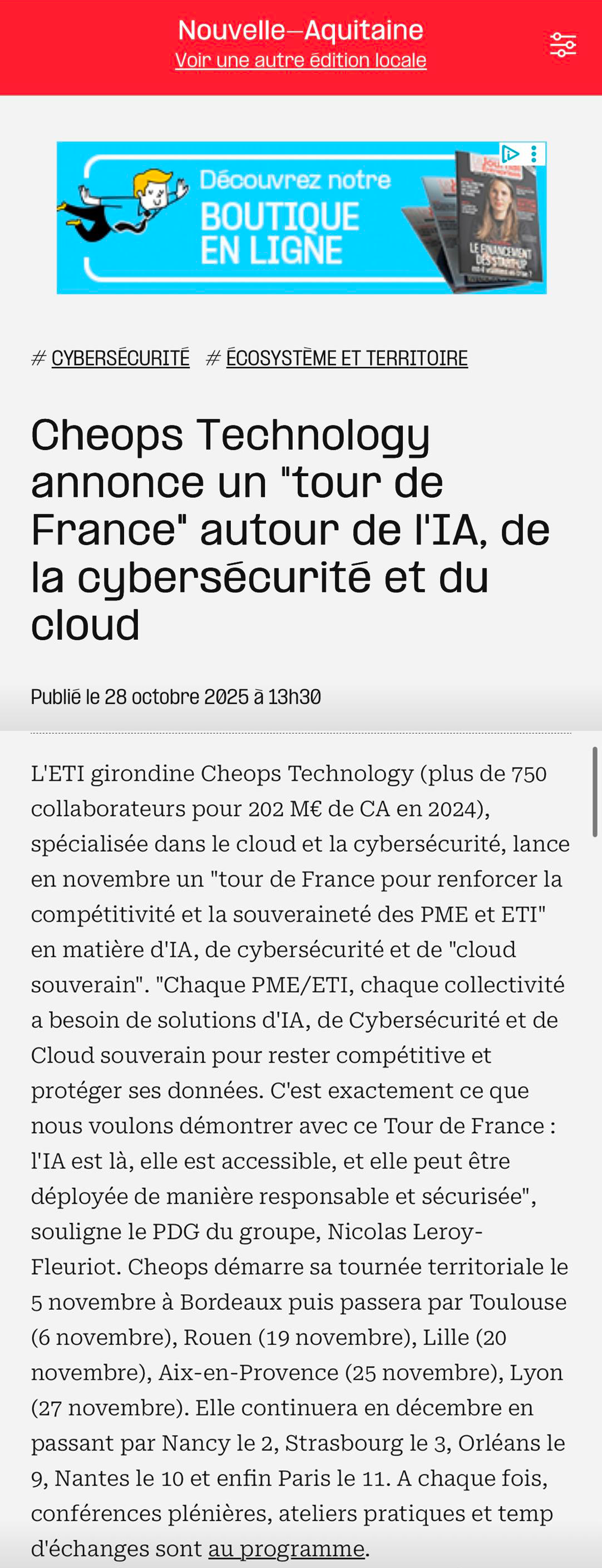 Gironde : hausse du chiffre d’affaires et nouvelle offre cloud dédiée à l’IA pour Cheops Technology
